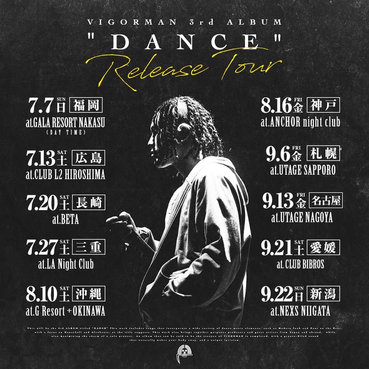 VIGORMANの3rdアルバム「DANCE」のリリースツアーが7月から9月にかけて開催される。