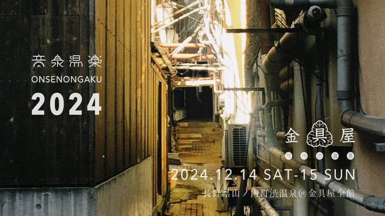 12月14日、15日に長野・金具屋でライブイベント「音泉温楽2024・冬 信州長野・渋温泉『金具屋』」が開催される。