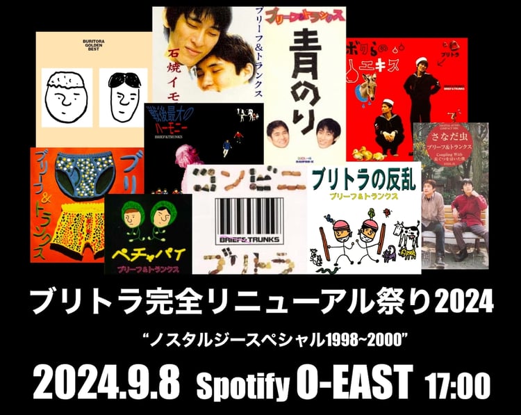 ブリーフ&トランクスが9月8日に東京・Spotify O-EASTでワンマンライブ「『ブリトラ完全リニューアル祭り2024』“ノスタルジースペシャル1998~2000”」を開催することが決定した。
