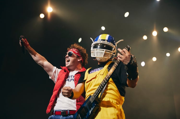そしてラストスパート、ライブは映画「マッドマックス:フュリオサ」にリスペクトを捧げたハードロックナンバー「ヒャッハー」へとなだれ込む。さらにライブの鉄板曲「昇龍拳が出ない」「ホッピーでハッピー」と続き、ジョーとアイキッドは熱狂の中でステージをあとにした。