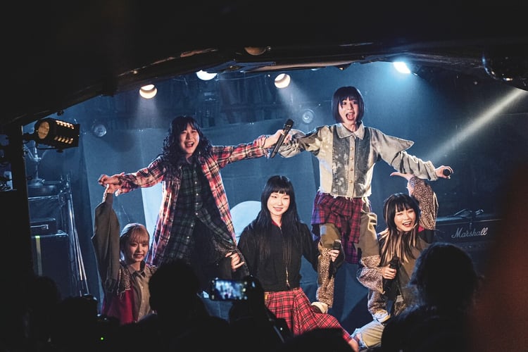 会場を埋め尽くす約100人の研究員(BiSファンの呼称)を前に行われた4度目の「自給自足LiVE」は、疾走感のあるメロコアサウンドに乗せて寄り添ってほしいという思いを歌う「DiRTY and BEAUTY」でスタート。さらに5人は「STUPiD」「テレフォン」とBiSらしいエッジの効いたロックチューンを畳みかけ、フロアの熱気を一気に高めた。