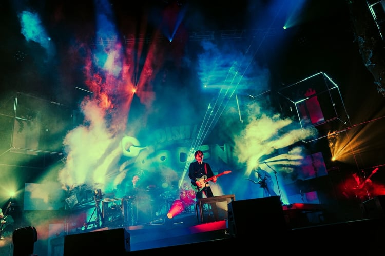 開演時刻を回り東京ガーデンシアターの広いステージの幕が開くと、そこに広がっていたのは霧深い森の奥のような神秘的な光景。客席を埋め尽くす満員のファンの拍手に迎えられ、ボタニカルな装飾が施されたステージの中央へと進んだDISH//の4人は「DAWN」をオープニングナンバーとして届けた。星空の微かな光の中に4人のシルエットのみが浮かび上がるような照明演出は北村匠海(Vo, G)の豊かな歌声と矢部昌暉(Cho, G)、橘柊生(DJ, Key)、泉大智(Dr)の鳴らす音によるバンドアンサンブルを鮮やかに際立たせ、そのスケール感に満ちた演奏をオーディエンスは静かに熱い眼差しで受け止める。荘厳なオープニングを経て「おい東京、ファイナルだぞ! やれるね? いけんのね?」と北村が叫ぶと、照明が明転して「Dreamer Drivers」へ。4人のグッドバイブスな演奏に客席にも晴れやかなムードが広がる中、続く「HAPPY」では北村や橘が熱いシャウトに思いを乗せて聴衆のテンションをさらに引き上げてみせた。
