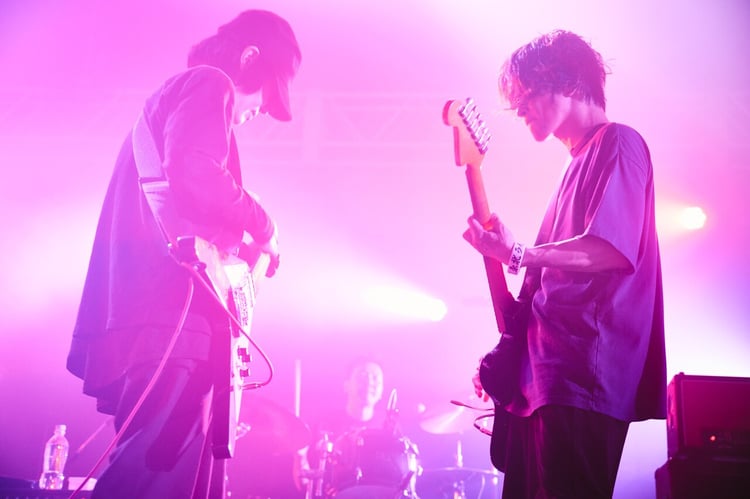 みずみずしいサウンドが響き渡る「Just Kids」を経て、彼らが披露したのは「汚れた血」。戸高がバンド加入前に福岡でART-SCHOOLのライブを観た際に、アンコールで演奏されていたという思い入れのある楽曲だ。ノスタルジックな空気を漂わせながら彼らはたおやかにアンサンブルを紡ぎ、アウトロにかけてその演奏は激しいものになっていく。朱色のライトに染まったステージで木下と戸高は向かい合い、美しい轟音の中でじっくりと音を鳴らした。