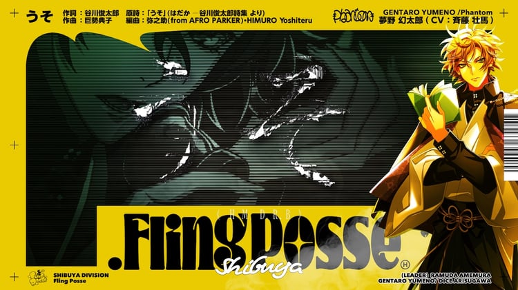 「うそ」は、8月21日に発売されるシブヤ・ディビジョン“Fling Posse”の新作CD「.Fling Posse」の収録曲。谷川俊太郎が1988年に発表した詩集「はだか」収録の「うそ」をもとにした1曲となっている。作曲はNujabes「reflection eternal」に「I Miss You」がサンプリングされたことで世界的に知られることとなった作曲家 / ピアニストの巨勢典子、編曲は弥之助(AFRO PARKER)とHIMURO Yoshiteruが担当。リリックは幻太郎の独白を通して、彼の今までの生き方や嘘に対する思いが描かれている。