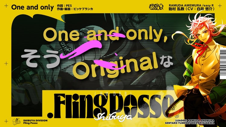 「One and only」は8月21日に発売されるシブヤ・ディビジョン“Fling Posse”の新作CD「.Fling Posse」の収録曲。天真爛漫な乱数らしさを感じるポップでリズミカルなトラックに、仲間と自分自身へのポジティブなメッセージが詰め込まれた1曲となっており、作詞をPES、作曲・編曲をビッケブランカが手がけた。