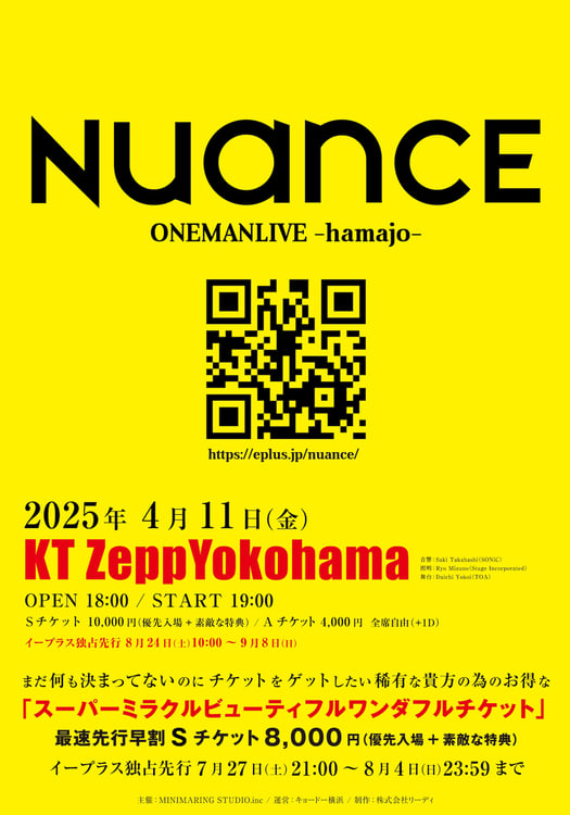 NUANCEが2025年4月11日に神奈川・KT Zepp Yokohamaでワンマンライブ「NUANCE ONEMANLIVE -hamajo-」を開催する。