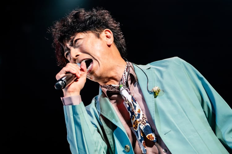 十分にフロアが温まると、藤井から呼び込みを受けて主役の後藤がようやくステージへと登場。「スローなDanceは踊れない」を色気あふれる歌声で届け、藤井は舞台下手でコーラスとして支える。後藤は途中フロアに向かって盛んにレスポンスを返す気さくな一面も見せ、観客を一気に惹きつけた。さらに「逃げたりしない」では「逃げたりしなーい!」コールを絶え間なく挟み、奥田のギターソロにも熱が入った。