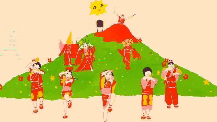 このたび新たに制作されたMVは盆踊りバージョン。「太陽に祝福された昼間の盆踊り」をコンセプトに、5人の子どもたちと、太鼓を叩く辻本、3人の妖怪たちをロトスコープアニメーションで表現した、明るくエネルギーのあふれる映像に仕上がっている。MVの制作は、NHK連続テレビ小説「虎に翼」のオープニング映像を手がけるシシヤマザキが担当。盆踊りバージョンの振付は辻本と菅原が手がけ、監修は鳳蝶美成が務めた。