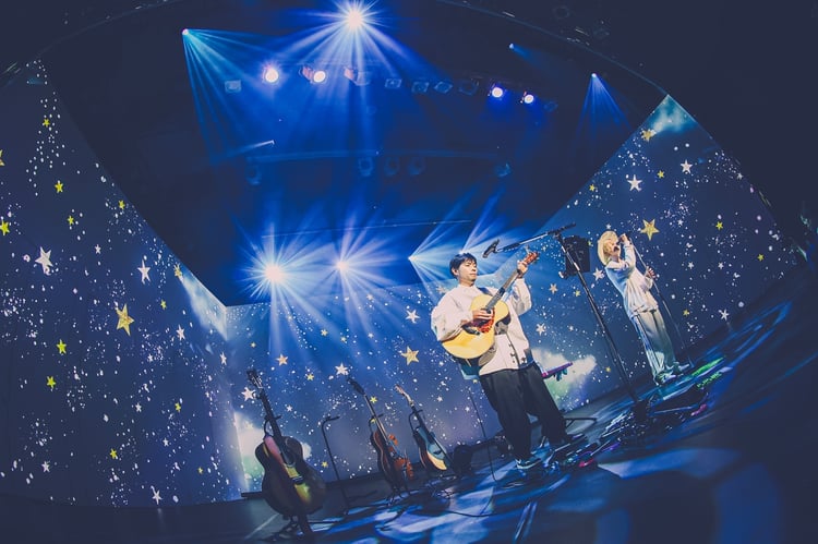 3曲立て続けに披露したところで山田は「ようこそいらっしゃいました」とオーディエンスを歓迎。吉田結威(G, Vo)が思わず「楽しいなあ」と漏らすと、山田も「楽しすぎて泣きそうになった」と語る。この日のライブの映像演出は、吉田山田の2人が中心となって結成された映像制作ユニット・ヨナモユが手がけており、「もやし」では青空の映像を天井まで映し出し、晴天のもとで山田がリコーダーを吹く光景を作り出す。「Color」では「世界中のミュージシャンとリモートでセッションする」という体のもと、メンバーが海外のアーティストに扮した映像が流れ、エキゾチックな雰囲気でライブが展開した。
