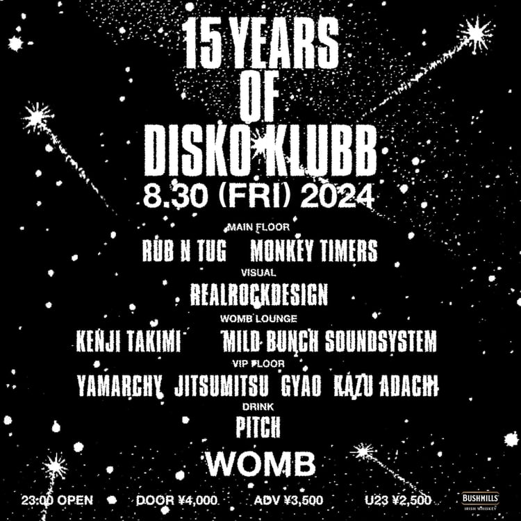 Monkey Timersが2009年にレーベル兼パーティとしてスタートさせた「DISKO KLUBB」の15周年イベントが、8月30日に東京・WOMBで開催される。