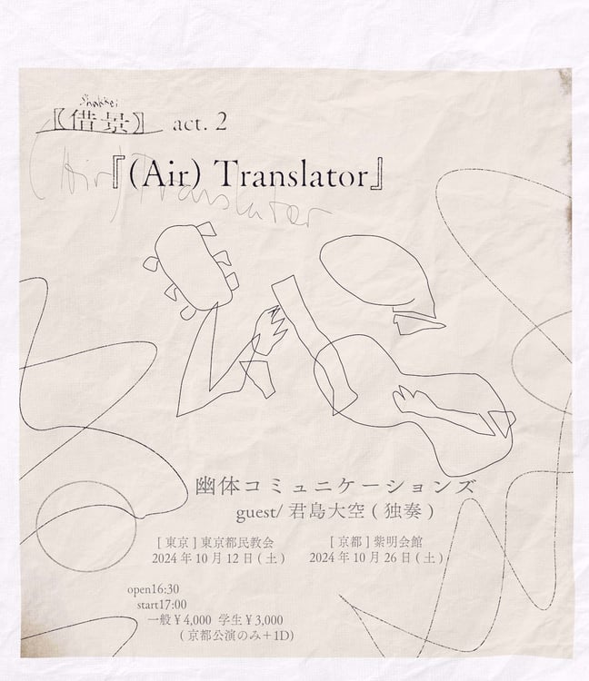 幽体コミュニケーションズが10月12日に東京・東京都民教会、26日に京都・京都紫明会館にて開催する自主企画イベント「【借景】act.2『(Air)Translator』」に君島大空がゲスト出演する。