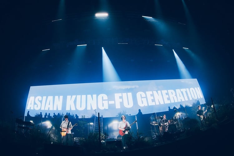 「いろんなことがありましたが、潔が入って25年。こういう場所に立てていることをうれしく思います。ステージの上での自分は、スーパーマンじゃないと思わされる。でも、この3人と出会って、自分の中の思ってもないところが開いていく感覚があって。本当にアジカンをやっててよかったなと思います」とメンバーを代表してこれまでの日々を振り返った後藤。だが、その眼差しはすでに未来に向けられており、「転がる岩、君に朝が降る」で彼は、これから先もアジカンが転がり続けることを示唆するように「僕らはきっとこの先も 心絡まって ローリング ローリング」というフレーズに力を込めた。