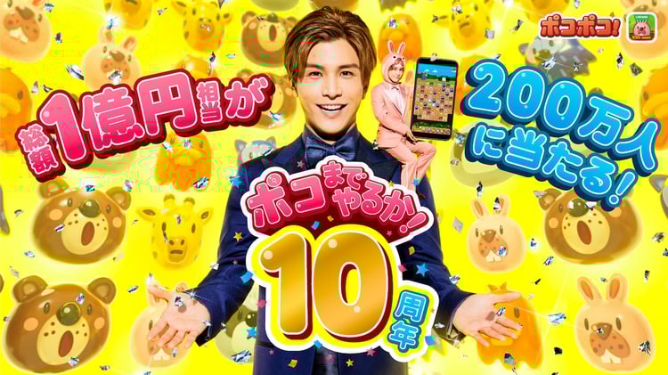 「LINE ポコポコ」は、「LINE ポコパン」でお馴染みの人気キャラクター・ポコタが登場する3マッチパズルゲーム。2014年9月のサービス開始以降、愛らしいキャラクターたちと世界観、同じキャラクターのブロックを3つ以上そろえて消すだけの簡単な操作性などが好評を呼び、世界累計2500万ダウンロードを突破した。ゲーム内ではCM放映とサービス開始10周年を記念した大型キャンペーン「ポコまでやるか!200万人に当たる総額1億円分プレゼントキャンペーン」や、「プリキュア」シリーズとのコラボイベントが開催される。