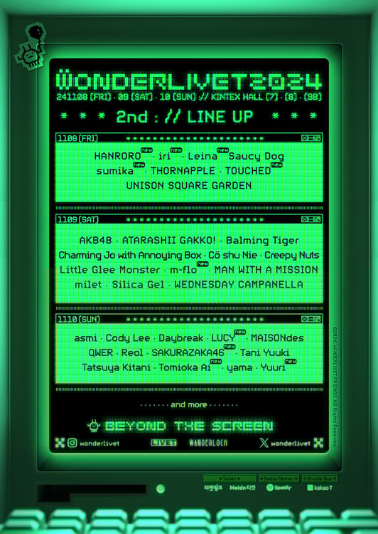 11月8日から10日にかけて韓国・KINTEX HALLで開催されるライブイベント「WONDERLIVET 2024」の出演アーティスト第2弾、および各アーティストの出演日割りが発表された。