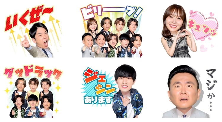 LINEスタンプは全24種でSixTONES、かまいたち、指原のボイス付き。今大会のキメ台詞「ビリーブ!」が添えられた全パーソナリティの絵柄や、「グッドラック」「ジェシンあります」「日々笑顔」といったSixTONESにちなんだメッセージ付きのビジュアルが用意される。