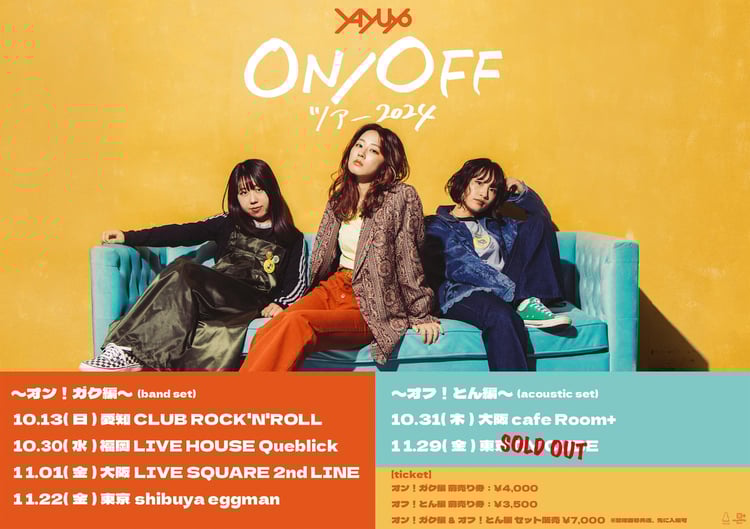 10月13日にスタートするヤユヨのワンマンツアー「ON/OFFツアー2024」の会場限定盤「ON/OFF」の収録曲が公開された。