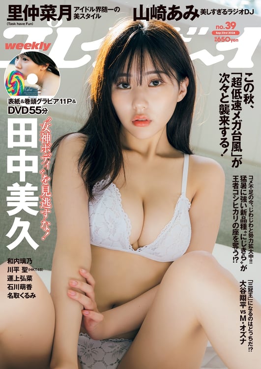 本日9月9日発売の雑誌「週刊プレイボーイ」39号の表紙に田中美久(ex. HKT48)が登場。里仲菜月(Task have Fun)、川平聖(HKT48)、運上弘菜(ex. HKT48)のグラビアが掲載される。
