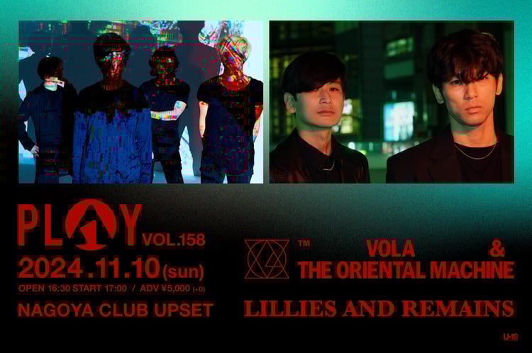 「PLAY」は東京のライブハウス、渋谷La.mamaが主催する企画。これまで渋谷La.mamaを中心に実施されてきたが、第158回は愛知へと舞台を移し、VOLA & THE ORIENTAL MACHINEとLillies and Remainsのツーマンライブとして行われる。渋谷La.mamaのオフィシャルサイトでは9月15日までチケットの先行予約を受付中。10代の人は無料で入場できる。