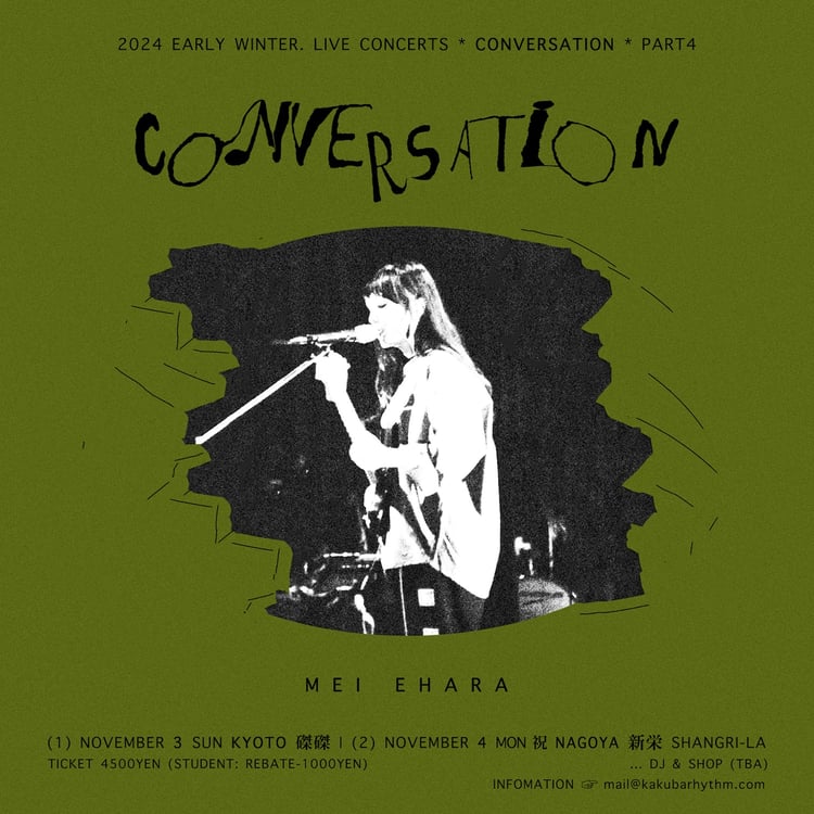 mei eharaが11月に京都と愛知でワンマンライブ「Conversation」を開催する。
