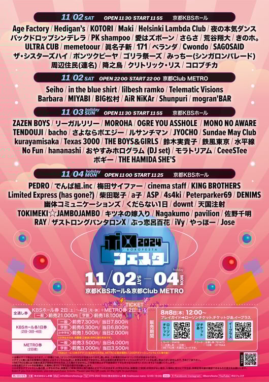 11月2日から4日にかけて京都・KBSホールで行われるイベント「ボロフェスタ2024」の出演アーティスト第5弾が発表された。