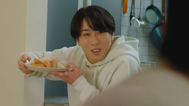 「ゆる~い時間て、サイコーだ」編で宮舘は“川島宅”を訪れ、ゲームを楽しんだり鍋を囲んだりしてゆったりと過ごす。鍋で具材を煮込んでいる最中、冷蔵庫の中から餃子とウィンナーを見つけた宮舘が「冷蔵庫にあったもん入れても?」とウキウキしながら尋ねると、川島は「ええんやで~」と快諾。最後はソファでうとうとしている宮舘が「今日泊まっても?」と聞けば、またもや川島が「ええんやで~」と優しく答える。