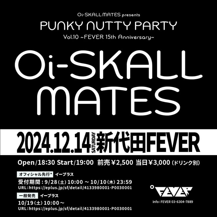 Oi-SKALL MATESが12月14日に東京・新代田FEVERにてライブイベント「PUNKY NUTTY PARTY Vol.10」を開催する。