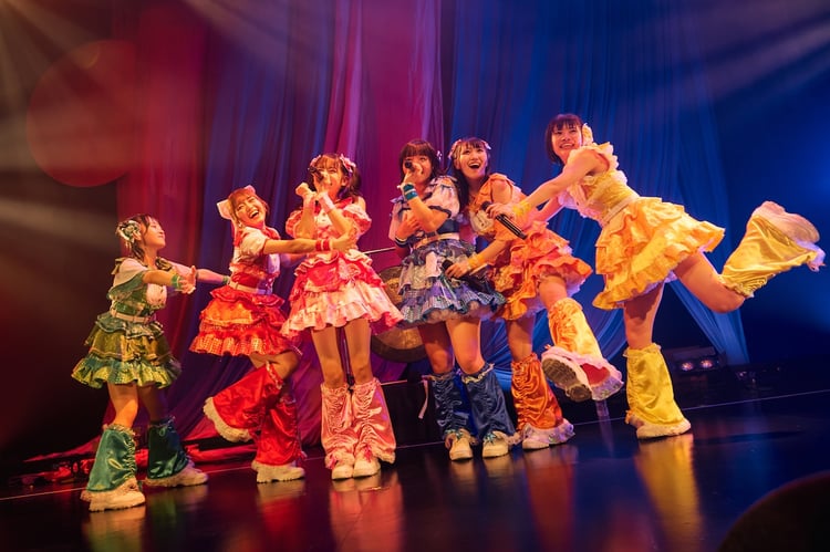 新メンバーの塩崎は「2周年ライブにたくさんの人が集まってくれるのは、新メンバー以外の4人がいろんなことがありつつも踏ん張ってきてくれたおかげだなと思うので、私も柱としてグループを支えられるようにがんばりたいです」と心境をコメント。石浜も「緊張しているんですけど、今日はとにかく最後まで楽しむと決めたので、楽しんでいきたいと思います!」と笑顔で頼もしい言葉を口にした。そしてライブは早くも後半戦へと突入。アッパーな夏曲「拝啓さまざまSUMMER」、エモーショナルな空気感をまとった「JUMP」などが次々に披露され、場内のボルテージがより一層上昇していく。「超越展開POROPOROコミッキュ」でメンバーがステージ上で肩を組むと、フロアのファンもその動きを真似をして会場の空気がひとつになった。