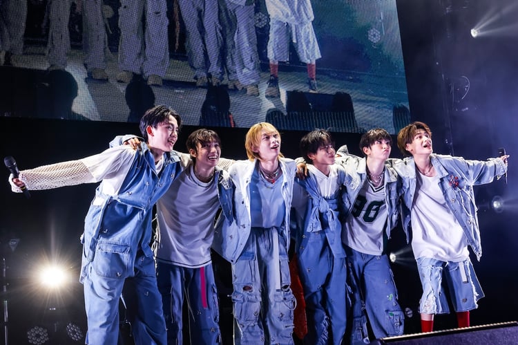 「ライブを成功させるには皆さんの盛り上がりが必要です!」と言う高岡ミロの指揮で発声練習を行ってから「Neo ROMANTIC」でライブを再開させ、楽曲を畳み掛けたLienel。大人びた表情を見せたかと思えば、客席に降りて笑顔を振りまき、息をつく暇もなくLienを熱狂させる。森田璃空のバック転が鮮やかに決まった「Don't look back」ではメンバーがジャケットを脱ぎ、ひと際情熱的に歌い踊った。