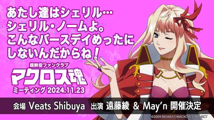 シェリルの誕生日当日に行われるイベントには、シェリルの声優を務める遠藤綾と歌唱担当のMay'nが出演する。遠藤とMay'nが2人でイベントを行うのは今回が初。トークやミニライブが行われるほか、新情報も発表される。