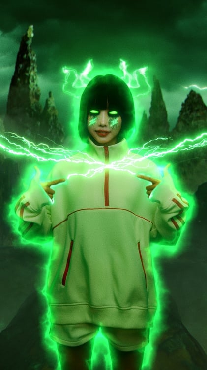 「あの び~む」のポーズを取ったあのは、TikTokのオリジナルエフェクトと同様、指先から稲妻を放出。そしてBB Beastが憑依したかのように叫んだあのは、鋭い爪で画面を切り裂くと、いつもの彼女に戻り「エフェクトやってね」と呼びかける。