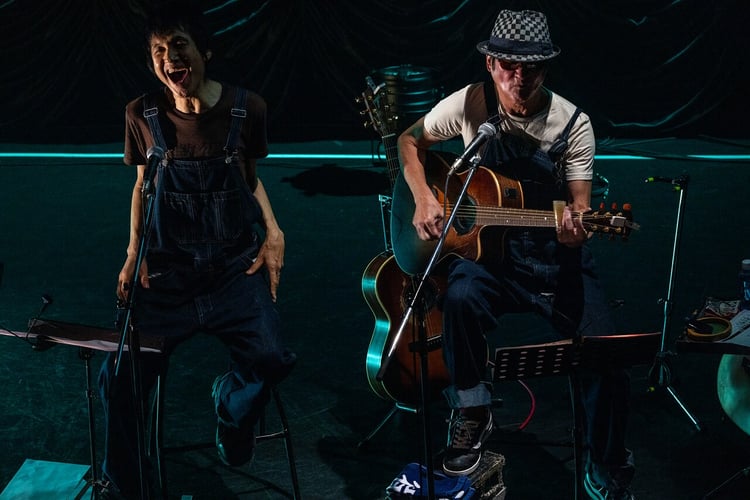 「今日、2人の椅子の距離は勘太郎さんに決めてもらいました。『勘太郎さんの記憶の中、思い出の中で、スリーピーとハミーの距離感どれくらいだった?』と聞いたら『これくらいかな?』と言ったのでこの距離になりました」という甲本の言葉を経て披露されたのは「49号線のブルース(スリーピーとハミー)」。この情緒あふれるブルースナンバーは内田が作詞した2ndアルバムの収録曲の1つで、憂歌団が1976年にスリーピー・ジョン・エスティスとハミー・ニクスンの来日ツアーに帯同したときの思い出がつづられている。甲本の提案により「憂歌団」というワードが使用された「旅してまわった 憂歌団と一緒に」という一節が歌われると、場内に拍手が沸き起こった。さらに2ndアルバムのタイトル曲「懲役二秒」が披露され、会場に帯びる熱がますます増大。続いて甲本と内田は1stアルバムのタイトル曲「ブギ連」で「おれたち ブギ連」と堂々と名乗り、ひとたびステージをあとにした。