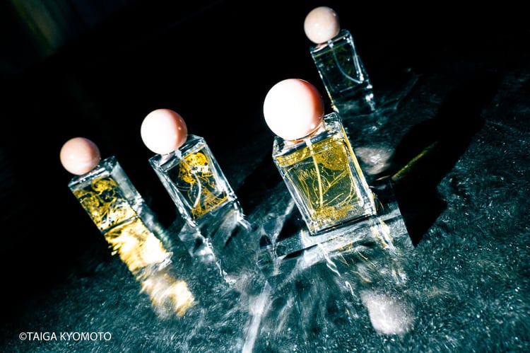 京本はフレグランスの内なる美しさまでを鮮明に映し出すようにシャッターを切り、限られた画角の中で「月と星」の世界観を表現。フレグランスの香りやモチーフとなったアートについて理解を深めながら、真剣な眼差しでシーンや構図、光などディテールまでこだわり抜いて撮影を行った。