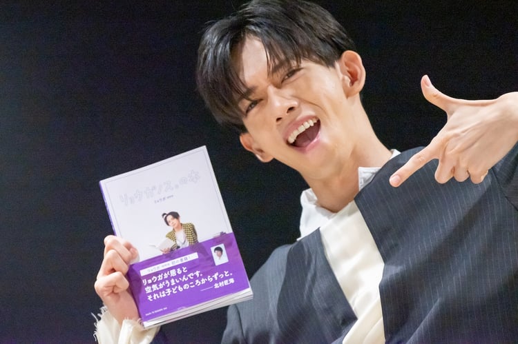 イベント開催に先立ち報道陣向けの会見に出席したリョウガは、出版に際しての思いを聞かれると「なぜか今日まで読むことを禁じられていて、今さっき読んだんですけど、ユーキとタクヤからの知らないメッセージが載っていたりして。自分自身にとってもファンの皆さんにとっても、最高のプレゼントになったんじゃないかなと。僕は誕生日というものに興味関心がないタイプなんですけど、そんな思いも塗り替えられるくらい、明るい1年になりそうな気がします」と心境を語る。連載を振り返り「何も考えずにその月のテーマに臨んで、その場その場で考えていたので(笑)。内容の無さすらもそのまま内容にするような連載だったので、そういうところへのクレームが来るんじゃという恐怖心がありましたね」と明かしたが、書籍の仕上がりに関して彼は「僕なんかにもったいないくらいクオリティが高い」と評し「帯コメントもね。北村匠海から……知ってるでしょ? 北村匠海。豪華すぎますし、バリエーション豊かな内容なので僕のファンだったら何回も見て楽しめるんじゃないかな」と期待を膨らませる。
