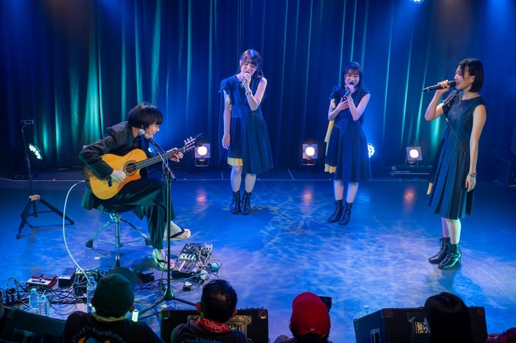 ライブ終盤、「オーロラ」「echo」「Blue」を立て続けに歌い上げ、清らかな歌声を観客の胸に染み渡らせたRYUTist。彼女たちは自分たちのパフォーマンスを終えると、君島をステージに呼び込んだ。「すごい気持ちになって観てました」とRYUTistへの思い入れの強さをうかがわせた君島は、新潟でのレコーディングの思い出を懐かしそうに語り合ったのち、再びアコースティックギターを手に。彼が華麗な指さばきで「水硝子」のイントロを弾き始めると、そのサウンドの上にRYUTistの透き通るような歌声が重なった。そしてそこに君島の歌声も加わり、4人の集中力の高まりが純度の高いパフォーマンスへとしてステージ上に表出。曲が終わると、貴重なコラボレーションを目撃した観客から喝采が沸き起こった。