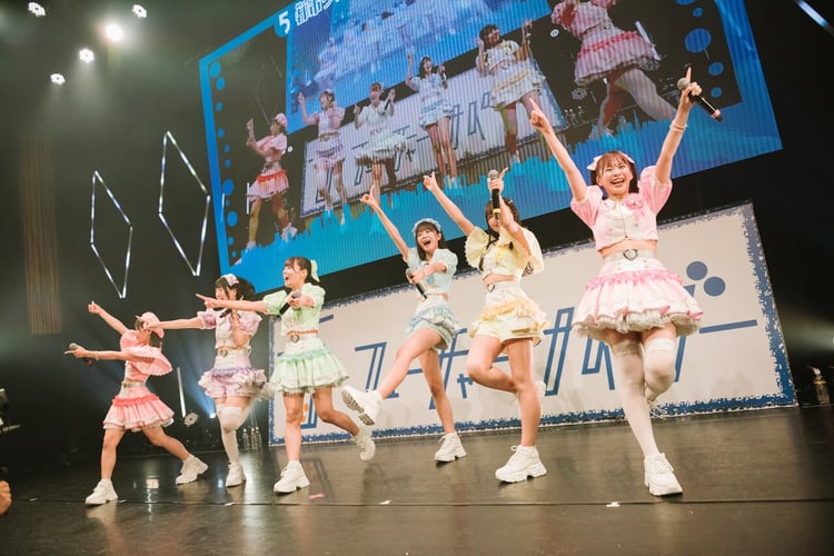 タスキを掛けた本多あおいがメンバーの待ち構える神田明神の入り口まで走るオープニングムービーが流れたのち、SE「Over Fu Ture」がライブの開幕を告げる。するとオーディエンスによるクラップや“MIX”が響きわたり、会場が熱を帯びていった。この夏多くの思い出を作ったさわやかなセーラー風衣装を身にまとい、ステージにさっそうと登場したメンバーが1曲目に歌ったのは「僕らのプラネット」。夏のアイドルフェス「TOKYO IDOL FESTIVAL 2024」で初披露したこの曲を6人が晴れやかに歌い上げつつ、躍動感あふれるダンスを披露するとフロアから力強いコールや歓声が沸き起こる。さらに「どんな⻘を」「⻘⾊シルエット」と、タイトルに“青”を含んだ抒情的なナンバーが連続し、ライブ序盤からメンバーもファンもアクセルを一気に踏み込んでいった。