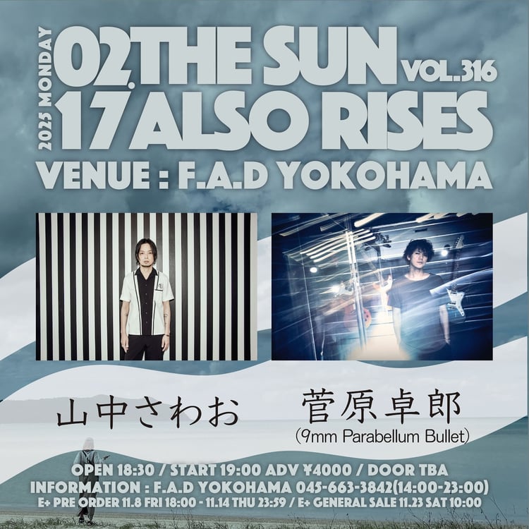 F.A.D YOKOHAMAが主催するツーマン企画「THE SUN ALSO RISES」のvol.316として行われる本公演。チケットの先行予約受付はイープラスで実施されている。