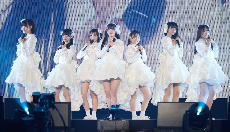ファンも一緒になり肩を組みながら揺れるのがおなじみの「いま踏み出せ夏」など、ライブがラストスパートに突入するとエモーショナルな空気はさらに増大。旅立ちを描いた楽曲「桜色カメラロール」では、7人の背中を押すようにステージ頭上から桜吹雪が舞う。そして三浦菜々子の「7年間の思い出を愛おしく思いながらこの時間を過ごしました。悔しくて泣いた日があったり、みんなで夢を叶えて笑い合ったり、当たり前のようで当たり前じゃない日々を過ごして、みんなと大きな夢を描き続けてこれて幸せでした」という言葉を合図に7人は客席に向けて一礼し、ステージをあとにした。