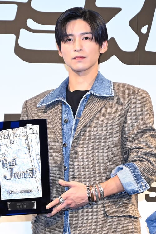 目黒は表彰盾を受け取り「このような歴史のある、誰もが知る賞をいただけたことを光栄に思います」と感慨深げな表情を浮かべる。さらに「Snow Manとしてデビューする前にこの賞を目指して毎日のようにジーンズを着用していた時期があって、時を経てここにいられることをうれしく思います」と喜んだ。また、「今年は特に私服でもけっこうデニムを履いたりとか、ミュージックビデオの衣装でも着たりとか、全部まとめると90%くらいデニムを履いてたなと。シンプルに好きなんだと思います」とコメントした。