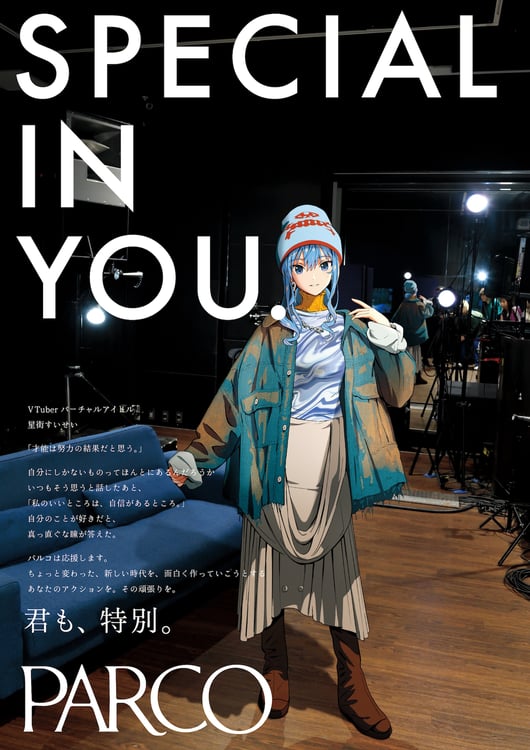 星街すいせいが、パルコのコーポレートメッセージ「SPECIAL IN YOU.」第23弾広告に起用された。Vtuberが同広告に起用されるのはこれが初めて。