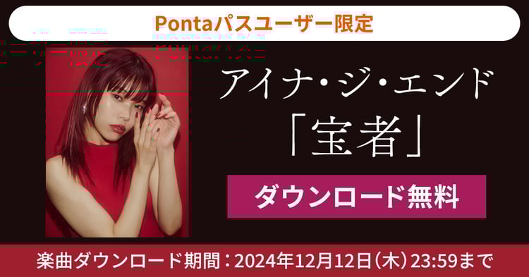 アイナ・ジ・エンドの楽曲「宝者」を無料ダウンロードできるキャンペーンが、Pontaパス会員を対象に12月12日まで公式サイトで実施されている。