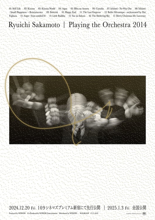 坂本龍一と東京フィルハーモニー交響楽団により2014年に行われたコンサートツアー「Playing the Orchestra 2014」が映画化されることが決定。12月20日より東京・109シネマズプレミアム新宿にて先行上映、2025年1月3日より全国で上映される。