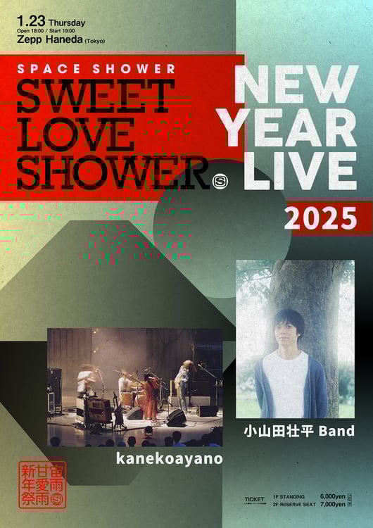 小山田壮平Bandと、カネコアヤノのバンドkanekoayanoによるツーマンライブ企画「SPACE SHOWER SWEET LOVE SHOWER NEW YEAR LIVE 2025」が2025年1月23日に東京・Zepp Haneda(TOKYO)で開催される。