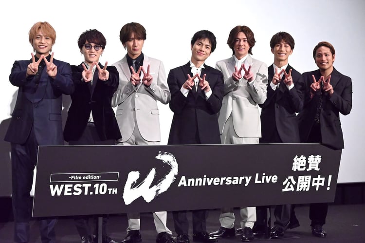 WEST.が出演するライブ映画「WEST. 10th Anniversary Live "W"」の公開初日舞台挨拶が本日11月22日に東京・TOHOシネマズ六本木ヒルズで行われ、WEST.のメンバー7名と監督を務めた丹修一が登壇した。