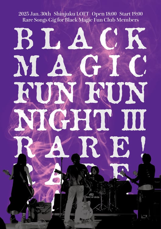 a flood of circleが2025年1月30日に東京・新宿LOFTでファンクラブライブ「Black Magic Fun Fun Night 3 ~Rare! Rare! Rare!~」を開催することが発表された。