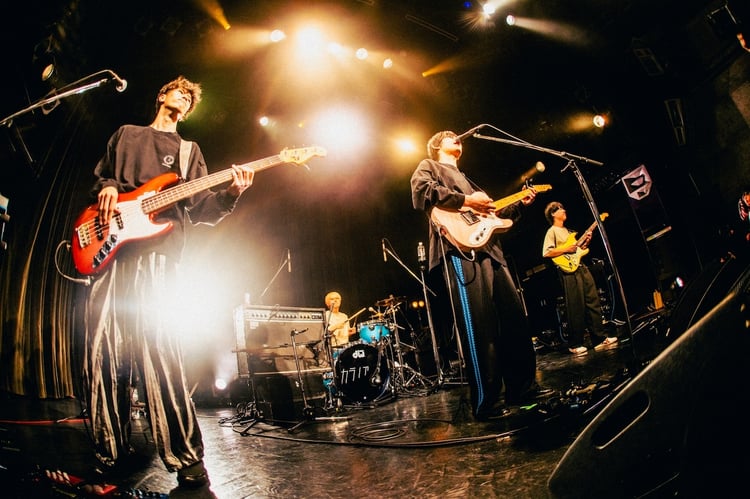 雄大(Vo, G)、樹(B)、かずき(Dr)とサポートメンバーの永田涼司(G / Couple)がステージに姿を現し、最初に演奏した曲は「ねむ」。疾走感に満ちたサウンドで徐々に温まっていくフロアを見渡し、雄大は「いいねえ!」と笑顔を見せた。「風邪っぴき」では樹、永田、かずきがパワフルなソロ回しを繰り広げ、観客から大喝采を浴びる。雄大はツアーファイナルの日を迎えた意気込みを「去年のワンマンライブから1年ですか。成長した姿をお見せすべく、たくさん準備してまいりました」と語り、オーディエンスの期待を煽った。