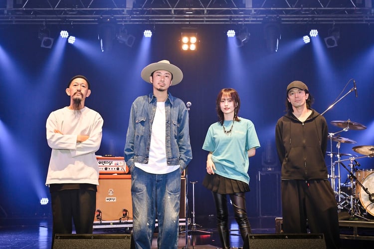 先攻のACIDMANは「夜のために」でライブを開始。剥き出しの歌声と生命力に満ちたサウンドを勢いよく放っていく。「FREE STAR」では開放感のあるアンサンブルに自然とつられるように、オーディエンスが一斉に飛び跳ねる壮観な光景が場内に広がった。ノスタルジックな雰囲気が漂う代表曲の1つ「赤橙」を優しく歌い上げ、大木は山本の人柄について「僕のほうがだいぶ年上なんですけど、さや姉と呼んでしまうくらい凛とした佇まいで、一本筋の通った感じで誇らしく生きているような方です」と話す。そして「彼女の『TRUE BLUE』という楽曲をプロデュースさせていただきました。作詞作曲はさや姉が行ったんですけど、初めて聴いたときにめちゃくちゃいい曲だなと思いました。えらそうな言い方に聞こえてしまうかもしれないんですが、作曲の才能もあるなと感じて、ぜひやらせてくださいということになって、そこからのご縁です」と関係性を語った。