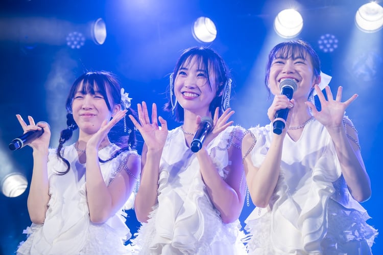 宇野は「わたくしごとにはなりますが……」と切り出すと、「この13年、グループでのライブ出演、皆勤賞を達成しました!」と満面の笑みで報告。大きな拍手を浴びたのち、「皆さんに会えるライブの時間が本当に大好きでした。人とつながること、人の温かさがRYUTistで一番学んだことだと思っています。私は最初、人と関わることが苦手だったんですけど、そんな自分も少しずつ変化していって、RYUTistの音楽や大好きな新潟の街を通してたくさんの方に出会えたこと……RYUTistが本当に楽しくて、かけがえない特別な日常でした」と感慨深い様子で自身のアイドル人生を振り返る。続いて宇野は五十嵐と横山と目を合わせながら「2人がいてくれたから、RYUTistでいられる喜びをこんなにも感じられています」「明日からはお友達として、これからもお姉ちゃんとして仲よくさせていただけたらうれしいです。夜中でも朝早くでも連絡くれたらすぐに出るので、遠慮せず、何か話したいことがあったら連絡してください」と語りかけ、再びフロアのほうを向くと「疲れてても迷っていてもステージに立って皆さんの顔を見たら、いつも元気になれて、本当に楽しくて。大好きだなといつも思っています。本当に、ありがともちー!」と笑顔をはじけさせた。