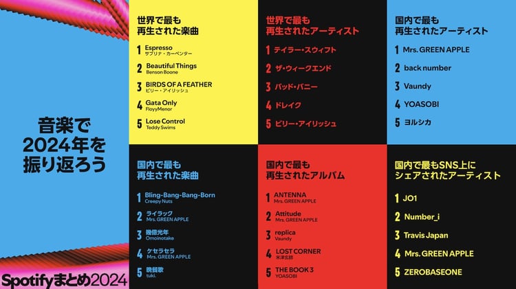 2024年 Spotify ジャパンランキング