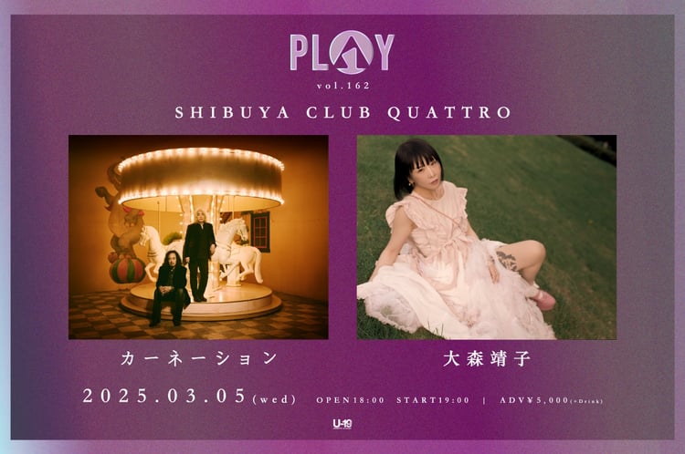 「PLAY」は東京・渋谷La.mamaが企画するツーマンライブシリーズ。今回はカーネーションと大森靖子が出演する。なお10代は無料でライブに入場することができる。