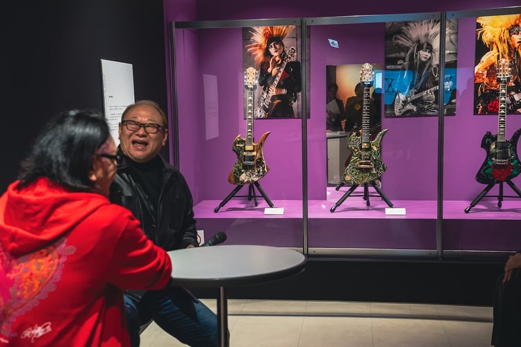 会場内には幼少期からX JAPANのHIDEとして活動するまでの思い出の品をはじめ、hideが実際にステージやミュージックビデオ、フォトセッションで着用した衣装や愛用のギター、書きかけの直筆歌詞、本人の描いたアート、功績の証であるプラチナディスク、ゴールドディスクの受賞品などすべて実物が展示されている。福岡会場では今年5月にhide生誕60周年を記念してリリースされたボックスセット「REPSYCLE~hide 60th Anniversary Special Box~」のジャケットやブックレットの撮影で実際に使用された造形作家・岩倉知伸によるオブジェの初展示、過去開催時より一部衣装やギターの入れ替えがあり、ここでしか見られない展示物が用意された。